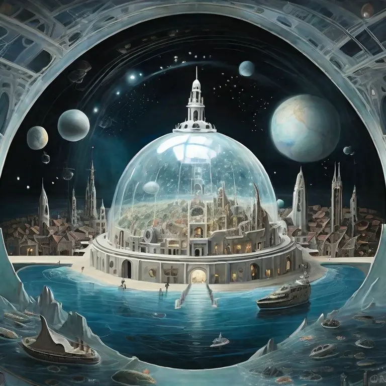 Construímos uma cidade aquática, em uma cúpula de um material que lembra o vidro blindado; só que maleável, não quebra com a pressão da água. Dividimos essa cidade em duas partes: uma de superfície seca, sem nenhuma gota de água e a outra totalmente de água. Não queríamos perder a capacidade de ser humano e respirar fora da água. Isso foi instintivo.